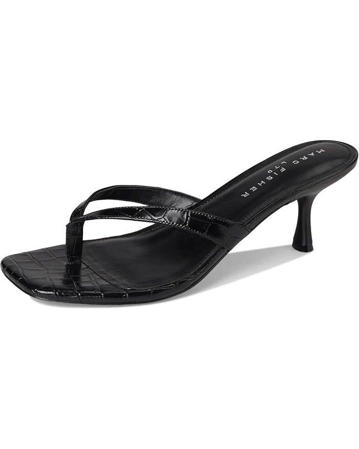 - Add both style and practicality to your look wearing Marc Fisher LTD™ Amelea Sandals, crafted in an open squared toe silhouette. The thong-style sandals feature a leather upper, polyurethane lining, a cushioned insole, and a tapered heel.