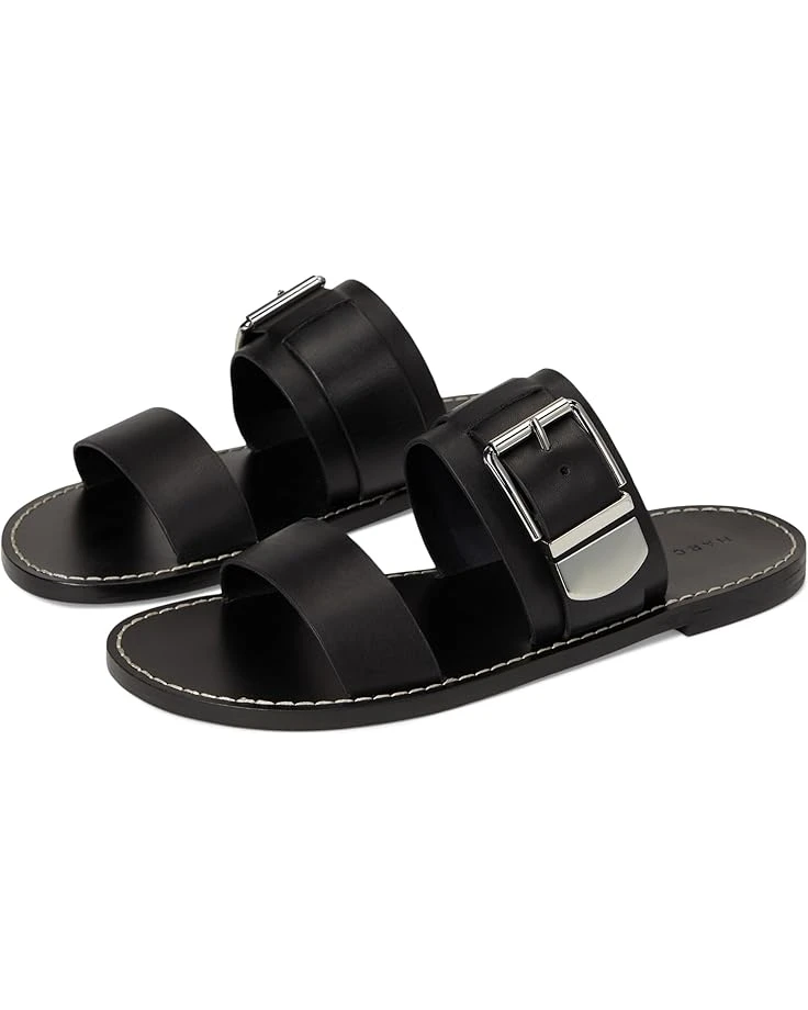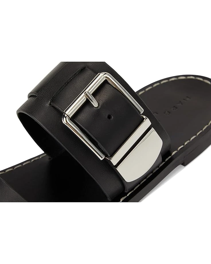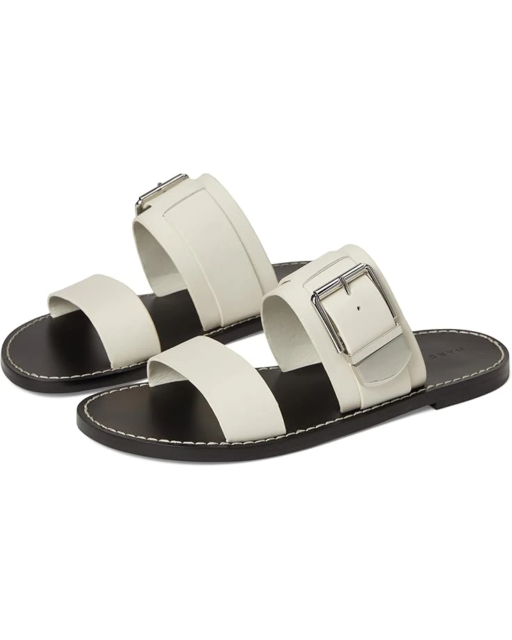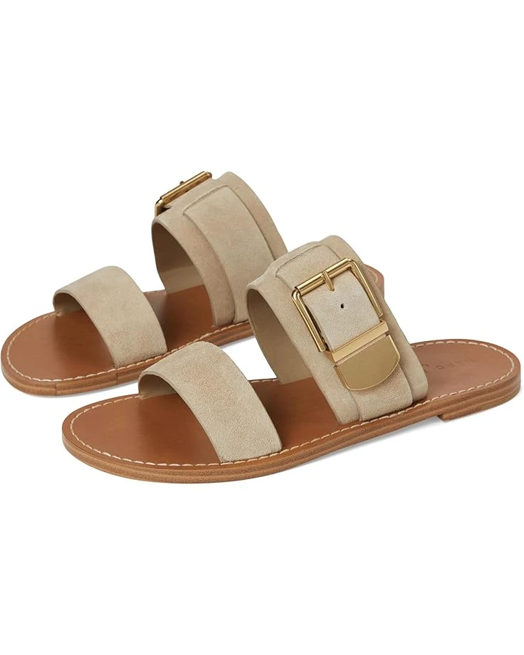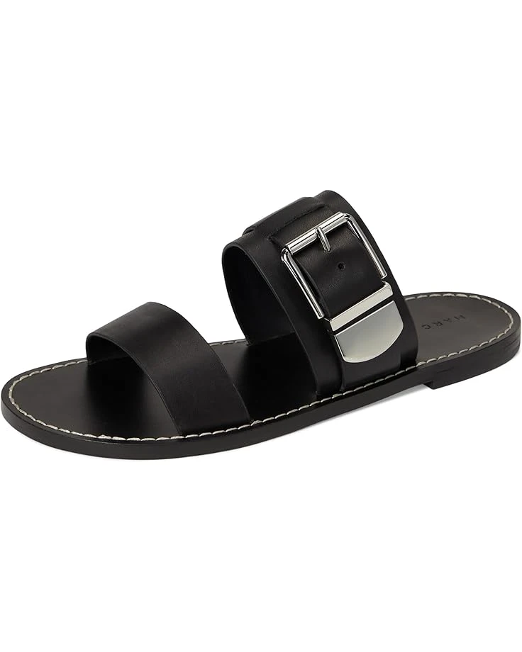 - Stay stylish in the Marc Fisher LTDâ„¢ Hallyn Sandals. The slip-on style sandals come with a two strapped leather upper, polyurethane lining, and a comfortable leather insole. The buckle closure on the sandals ensures a secure fit.