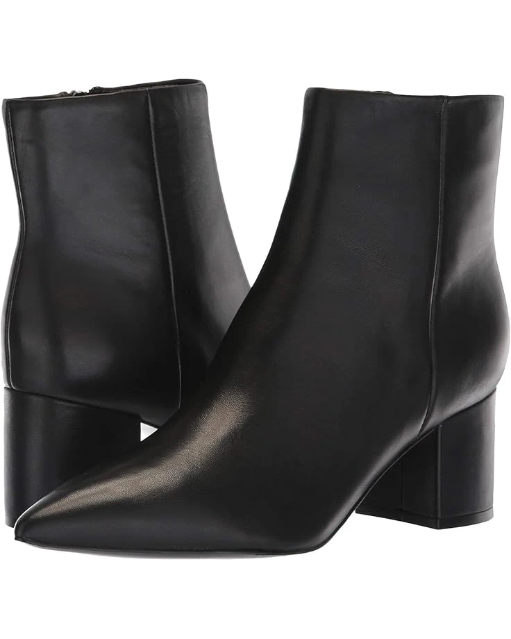 I love this bootie. I had ordered quite a few to try and ending up choosing these ones in taupe. I am so glad I read the other reviewer’s comments. I wear a 7/12 and went with a 7 and it fits me perfectly. The block heel is well placed and extremely comfortable. I have plantar fasciitis and a very high arch and there is no problem. I might add a slim three quarter length orthotic. The neck of the bootie is slender and looks sleek. The leather is buttery soft and moves with my ankle. So many ankle booties have leather that is stiff and hard and unforgiving when you work but not these. Perfect. The taupe is a great neutral that I can wear with navy, black or even grey. I am a college professor and plan to wear these teaching.