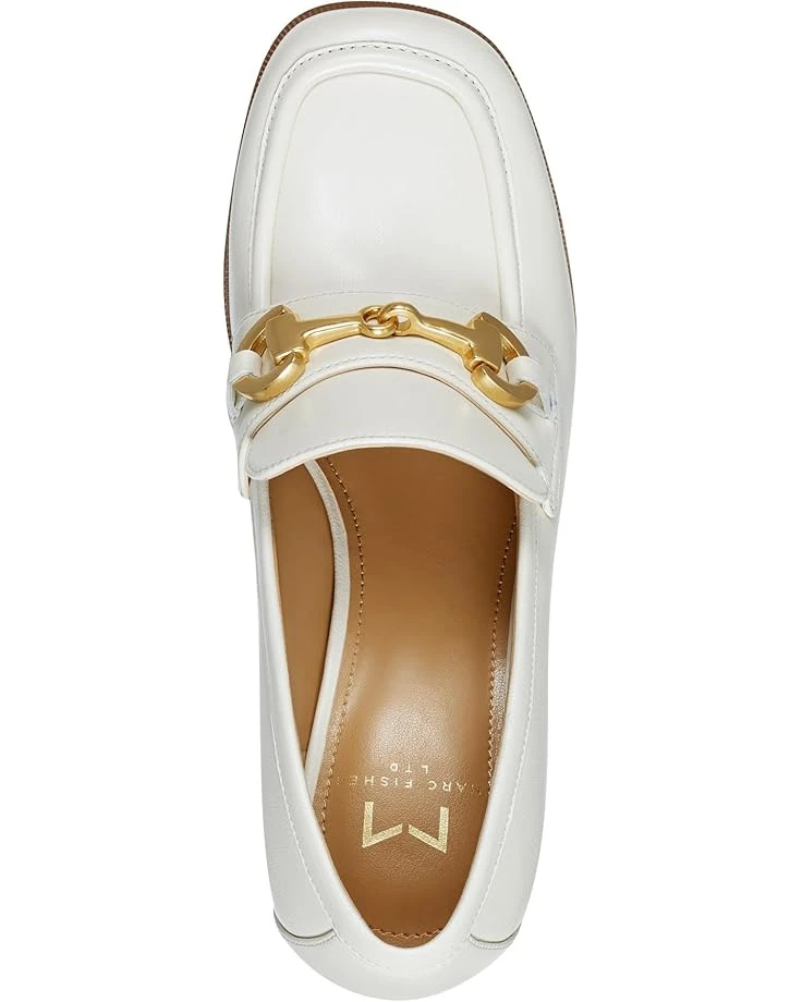 - Display your bold side and enjoy some added height donning the Marc Fisher LTD™ Machi Dress Pumps. Highlighting a loafer-inspired silhouette, the shoes come with a square toe, a polished metal bit accent on the vamp, and a high stacked block heel. The upper of these shoes is crafted in leather while their interior is lined with man-made materials.