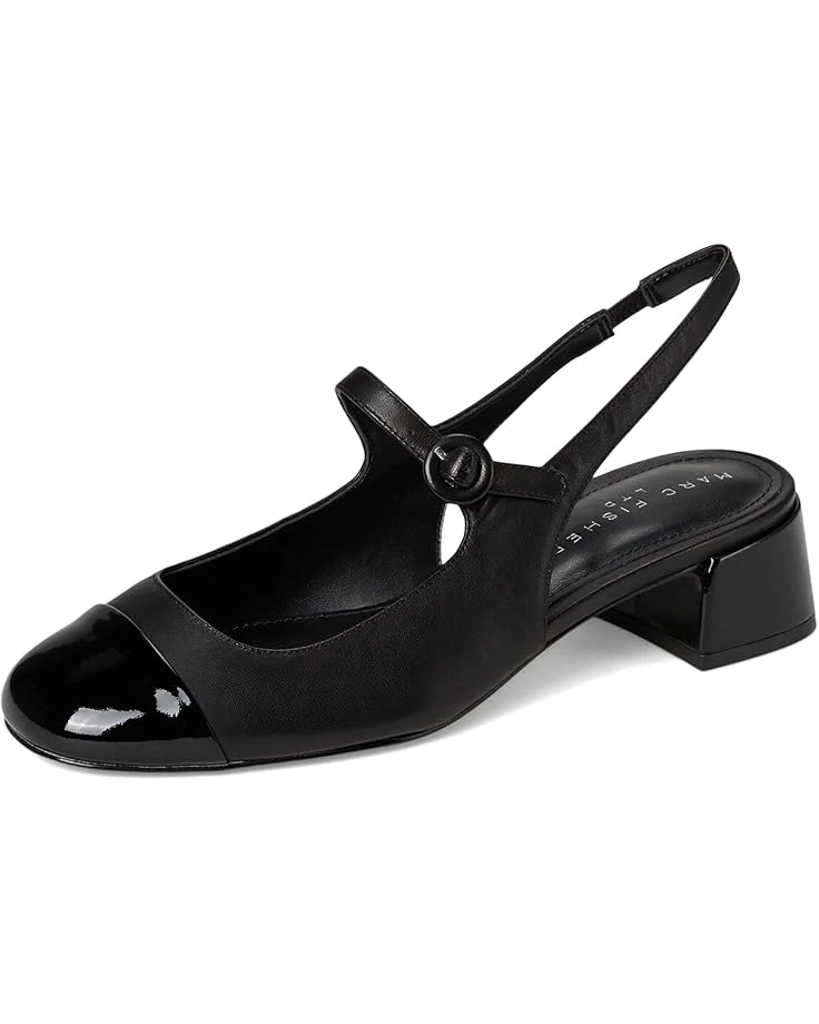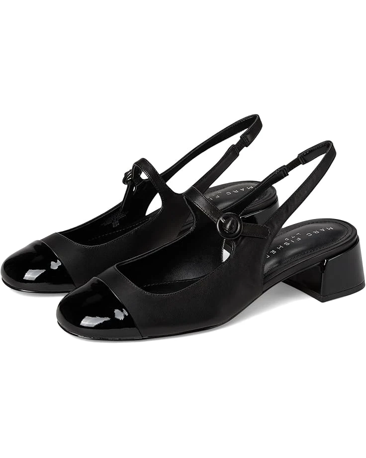 - Sweet and chic! Complement your effortless style in the Marc Fisher LTD™ Martie shoes. Featuring an adjustable Mary Jane buckle closure strap, round toe silhouette, elasticized slingback strap, and a wrapped block heel.