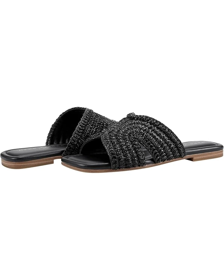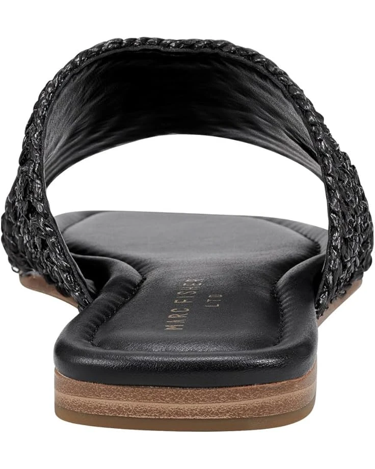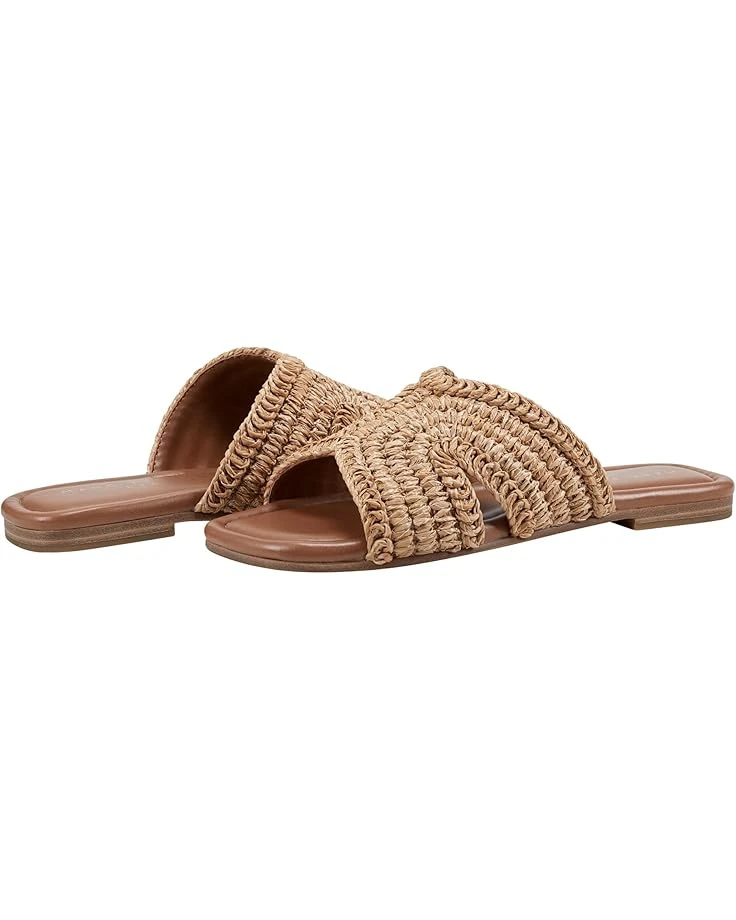 - Designed to enhance your go-to style and comfort during those warmer days, the Marc Fisher LTD™ Narda Flat Sandals feature a breezy and lightweight construction with a textured woven raffia (synthetic) upper, a synthetic lining, and a lightly padded insole. Coming in a slip-on style, the shoes are easy to put on and off.