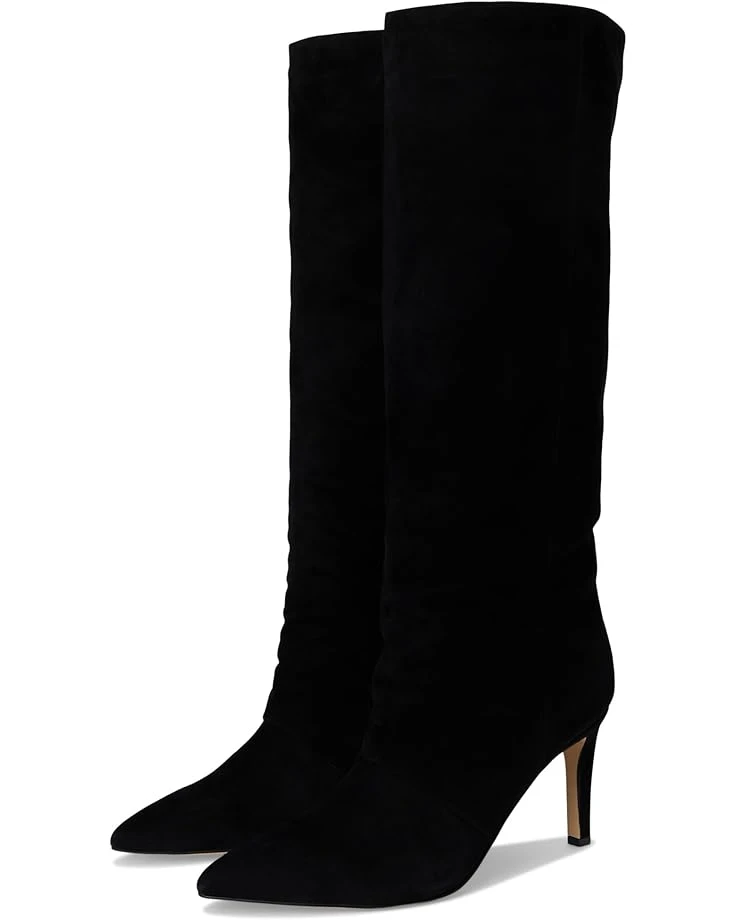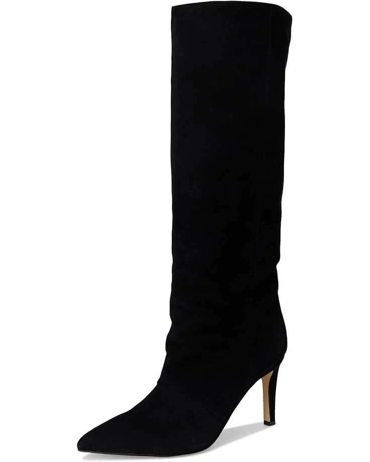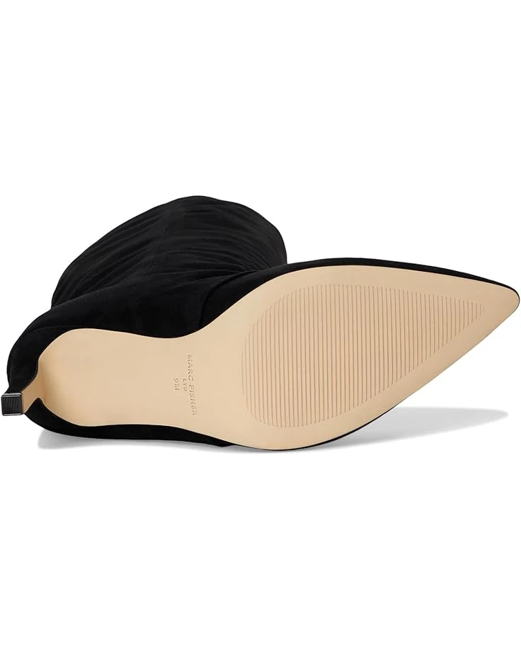 - A fusion of sleek lines and luxurious comfort, the Marc Fisher LTD™ Narysa boots. afted with a soft suede upper and insole, these knee-high stunners boast a chic pointy toe and a daring stiletto heel that elongates your look. The fabric lining ensures a smooth feel, while the synthetic rubber outsole provides grip and stability. With a convenient pull-on closure, these boots are your go-to for effortless style. A wardrobe must-have, the Narysa elevates any outfit, offering casual luxe in a silhouette that’s perfect for turning heads wherever you go.