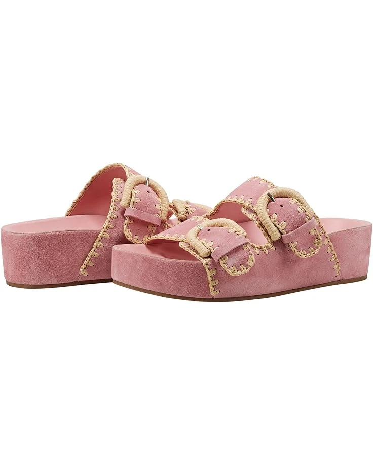 - Indulge in the chic allure of Marc Fisher LTD™ Solea sandals, where sophistication meets comfort. Crafted with a luxurious almond/open toe silhouette, its slip-on closure offers effortless elegance. Boasting a leather/man-made upper with PU lining, and a synthetic rubber outsole for durability. Elevate every step with its stylish buckle strap detailing.