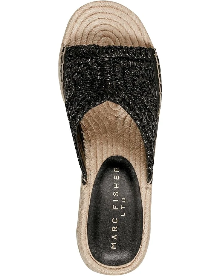 - Espadrille wedge marvelously elevates the stunning look of Marc Fisher LTD™ Zakki Sandals. The slip-on footwear features man-made upper construction with open round toe silhouette and sculpted platform detail.