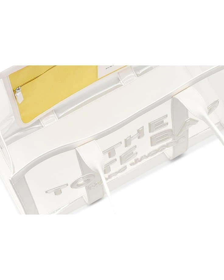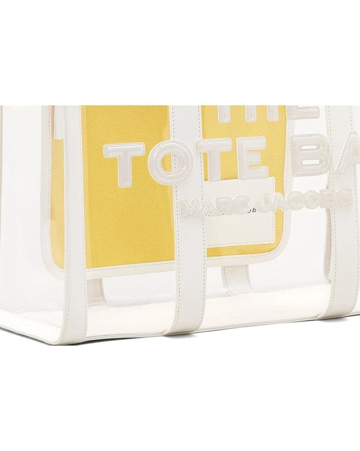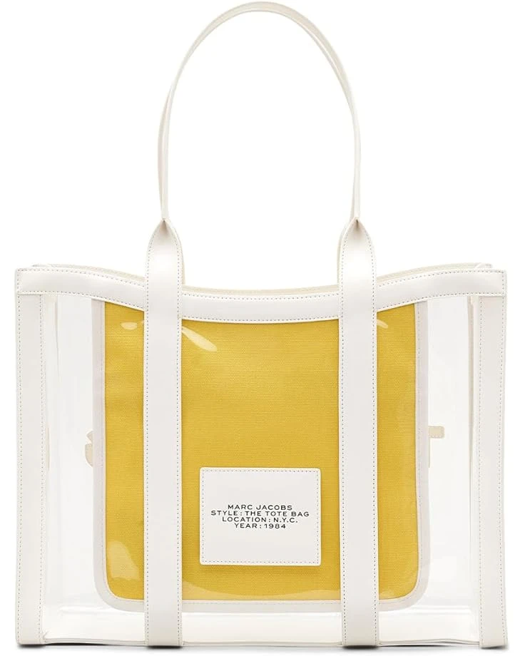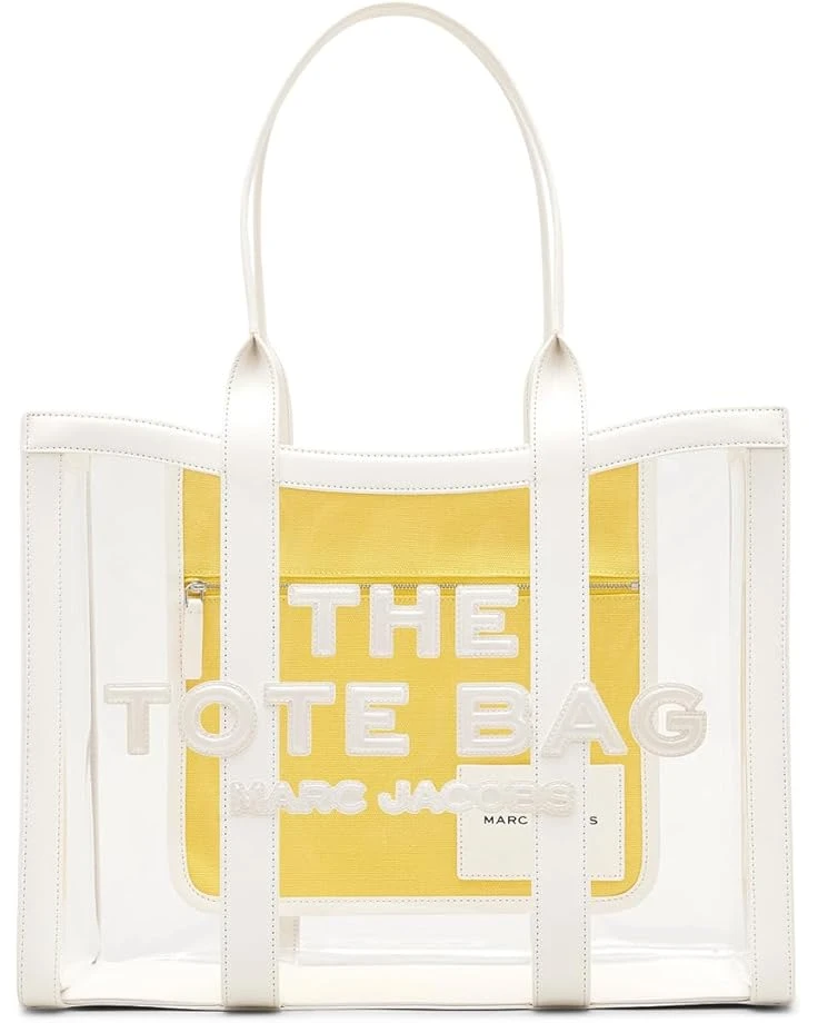 - Grab everyone’s attention wherever you go carrying the Marc Jacobs® The Clear Large Tote Bag. The clear design of the bag makes it the perfect accessory to pair with your different styles and outfits. This tote bag is made from polyvinyl chloride which offers durability. The shoulder straps of the bag make it convenient to carry around while the wide interior compartment offers enough storage space. Water-resistant, this clear tote bag makes a great addition to your bag collection.