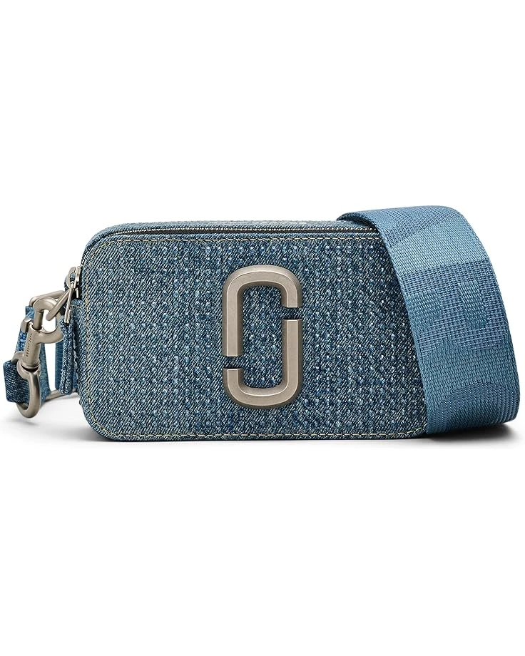 - Explore the shopping street any time carrying Marc Jacobs® The Crystal Denim Snapshot bag. Crafted from crystal denim cotton it features detachable adjustable strap. Two compartments with zipper closure ensure content can remain safe.