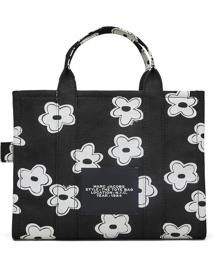 - Add a pop of playful elegance to your style carrying the Marc Jacobs® Daisy Canvas Medium Tote! Crafted from durable canvas material for everyday use, this bag features two short handles and a detachable long strap for effortless shoulder or crossbody wear. Adorned with the iconic Daisy print, it brings a cheerful flair to any look. With its adjustable crossbody strap and a sleek brand logo on the front, this tote combines practicality and fashion. Spacious and stylish, it’s perfect for daily essentials, making it your go-to accessory for a modern, on-the-go lifestyle.