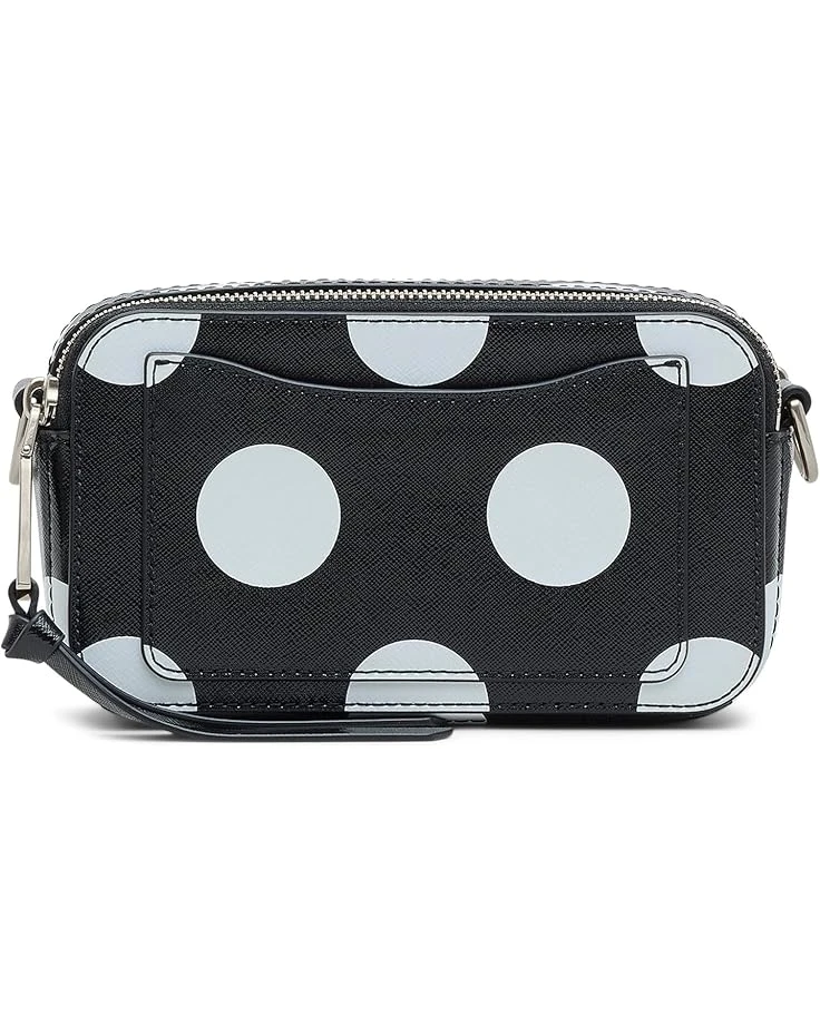 - The Marc Jacobs® The Spots Snapshot handbag crafted from leather. This handbag comes with allover iconic print, dual zippered closure, and one adjustable and removable crossbody strap. The brand detailing accent on the front gives a tempting look.