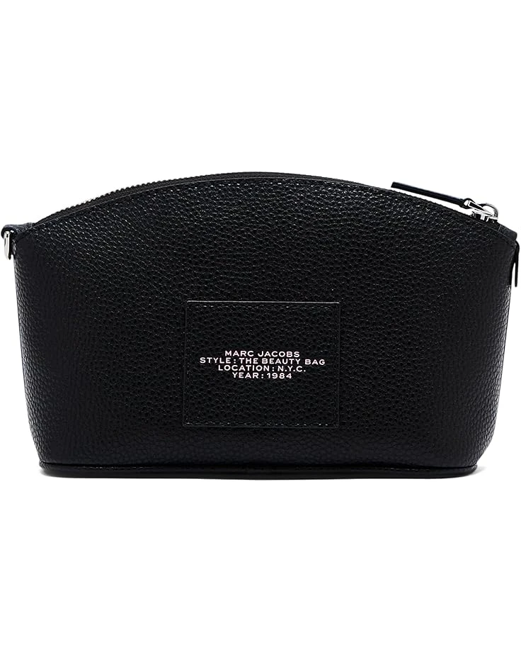 - A part of THE™ collection, the Marc Jacobs® The Sticker Patch Beauty Bag is crafted from pebbled leather and features colorful stickers and an interior jacquard patch that says, “WARNING CONTENTS MAY CAUSE COMPLIMENTS”. This beauty bag comes with a removable leather wristlet strap and a zippered top closure. Designed with a spacious interior for effortless makeup and toiletry storage, this leather purse is a perfect choice to make your style statement.